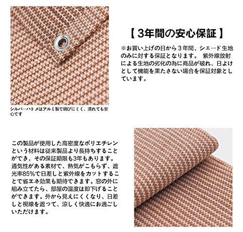 厚すぎず薄すぎず、存在感もあまりなく、適度に紫外線をカットしてくれます。 台風のときもそのままにしてありましたが、問題ありませんでした。 素材もしっかりしており、猛暑を越しても日焼けすることもありませんでした。